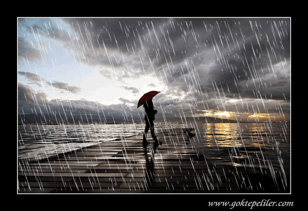 | Yalnızca yağmur yağdığında seviyorum bu şehrin insanlarını herkesin yüzü ıslak, başları eğik, herkes benim hep olduğum gibi. |