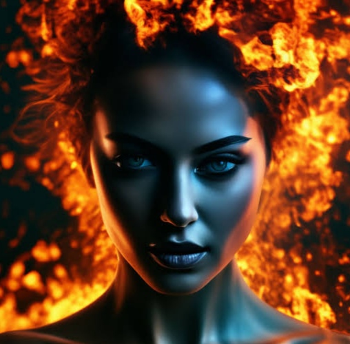 in flames